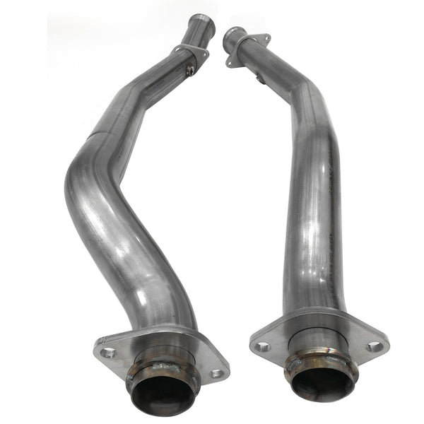 This Stainless Midpipe System fits the 2018-2021 6.2L Jeep Trackhawk and comes with all the hardware needed for a drill-less installation. These 3" pipes feature smooth mandrel bends for increased exhaust flow and is designed to bolt up to your stock exhaust manifolds, thus maintaining the factory connection point in front of the X-Pipe. This system is made of stainless steel and is proudly manufactured in the USA!